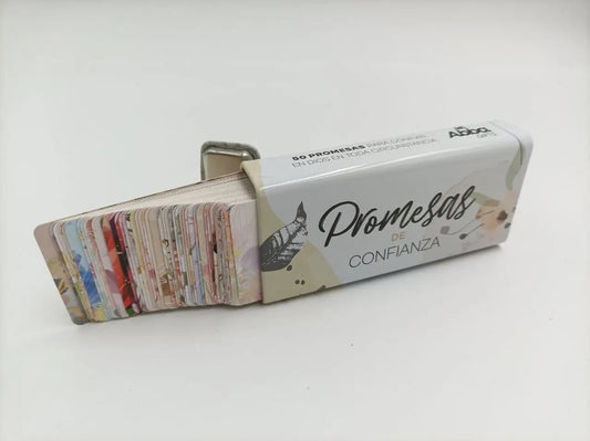 Sumérgete en una colección de 40 tarjetas que albergan promesas divinas, cuidadosamente presentadas en una...