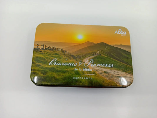 Colección de 50 tarjetas con promesas bíblicas presentadas en una elegante caja metálica de diseño...