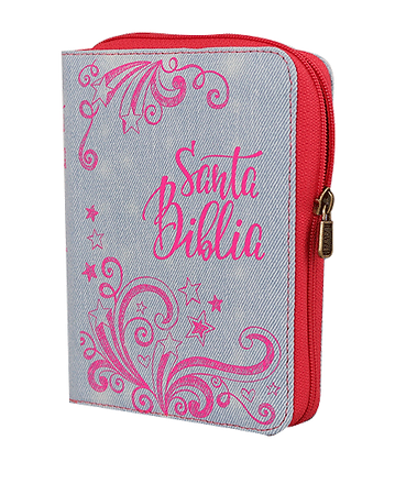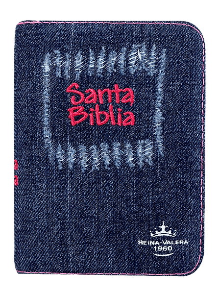 La Biblia Compacta Jeans Bordado Deslavado / Rosa azul – Índice – Cierre / RV1960...