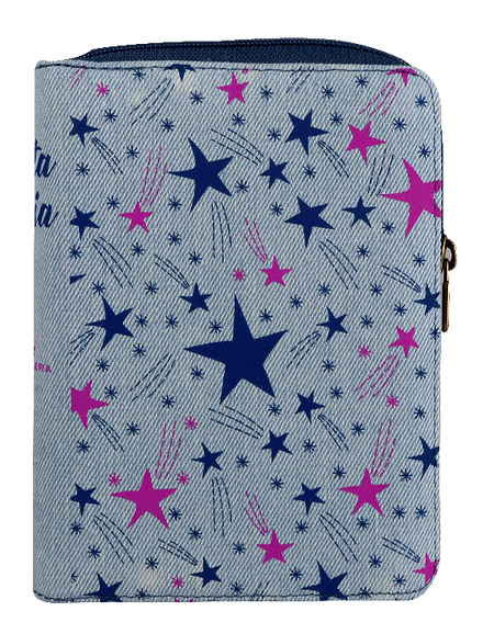¡Lectura y estilo en uno! La Biblia Compacta Jeans Bordado presenta una cubierta de mezclilla...