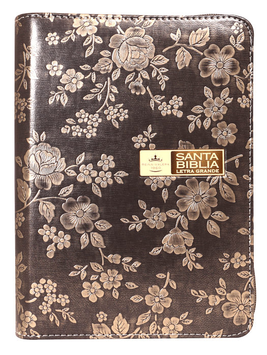 Biblia Reina Valera 1960. La cubierta es imitación piel, adornada con flores plata en negro....