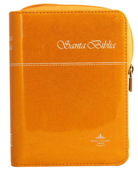 La Biblia Bolsillo en color naranja con cierre e índice es perfecta para tener a...