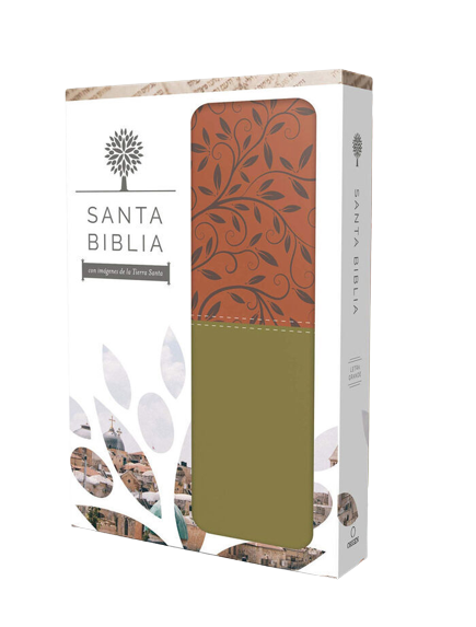 Biblia tamaño grande, símil piel de dos tonos, verde y canela, en estuche de regalo. Su...