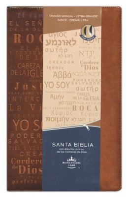 Biblia tamaño manual, ultrafina con letra grande, índice y cremallera. Símil piel canela con cinta marcadora...