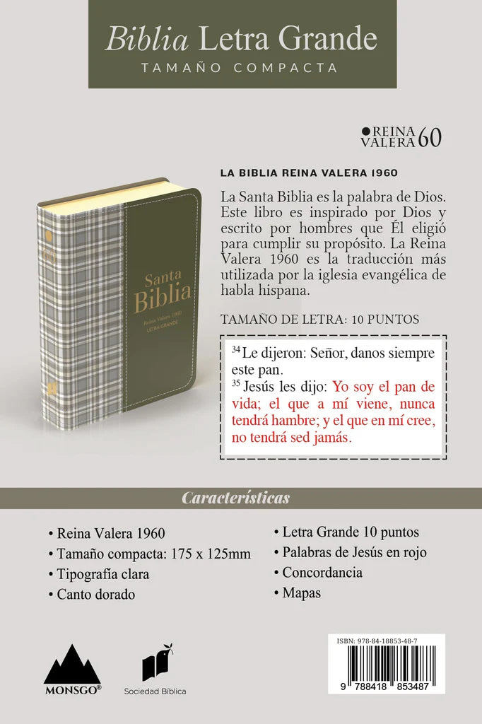 Biblia Compacta Cuadros Verde Claro RVR60 – Imitación Piel