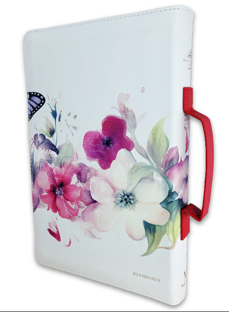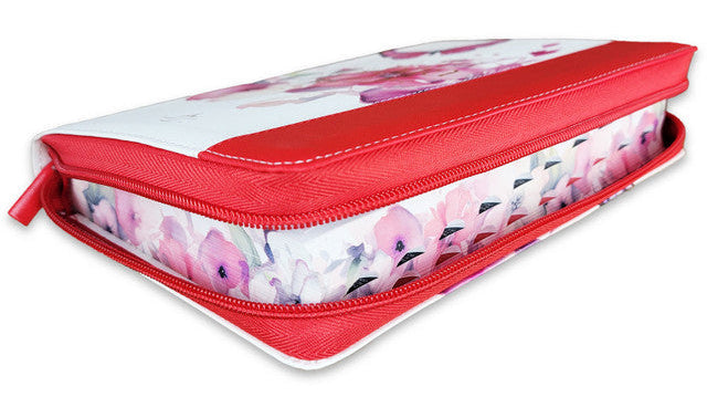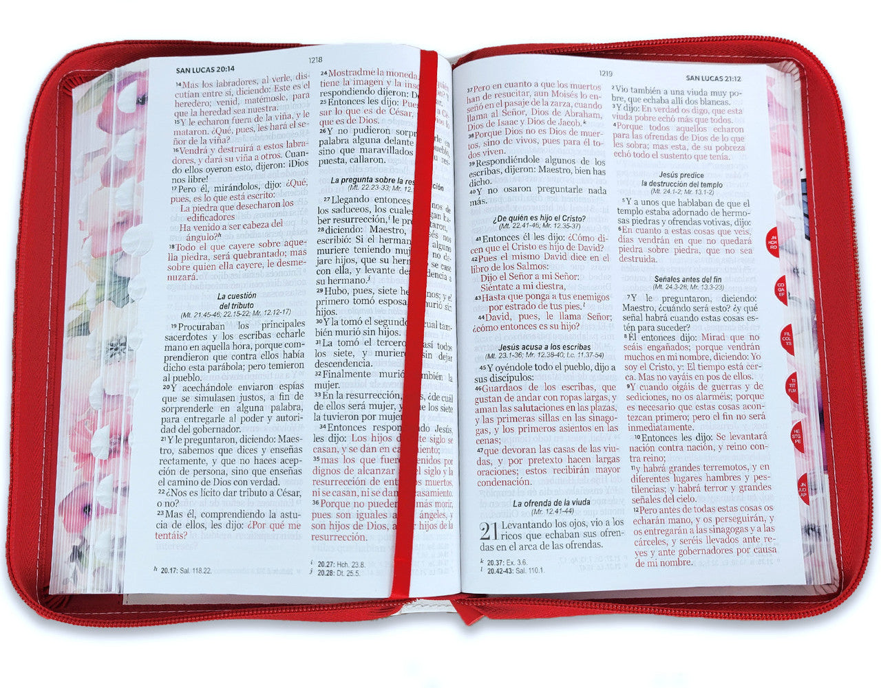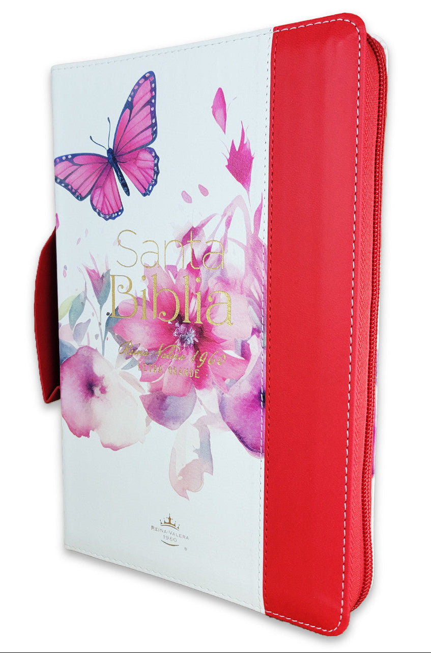 Biblia con Cierre Letra Grande 12 puntos para Mujer RV1960 imit piel rojo con índice, canto floral, y asa de mano/ Mundo Biblia