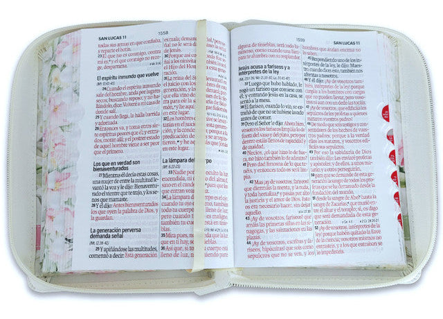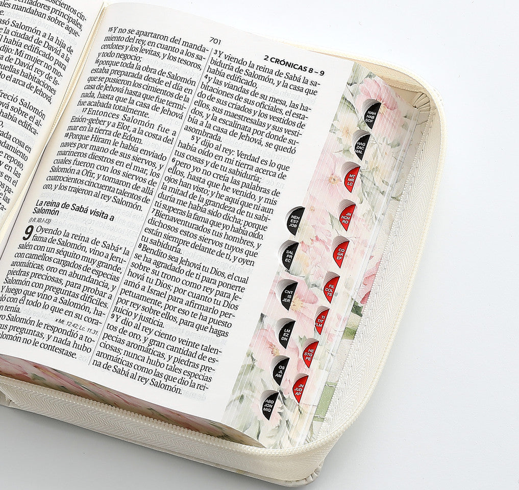 Biblia con Cierre Portátil Letra Grande 12 puntos RV1960, imit piel flores en primavera con índice y canto floral/ Mundo Biblia