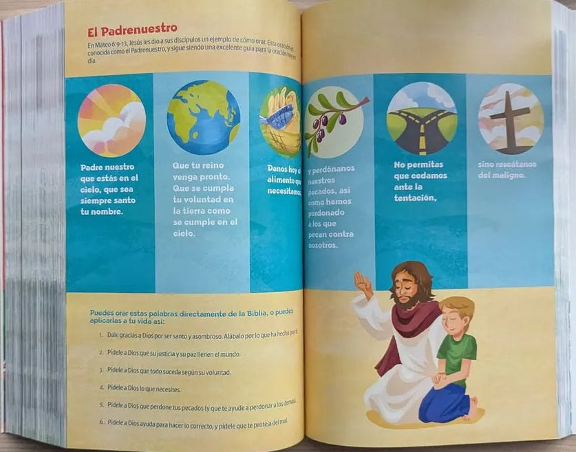 • La letra de esta Biblia es de 9,5 puntos y el contenido está en un formato de dos columnas. Los números de los capítulos están en rojo y los versículos en azul. Esto facilitará que los pequeños lectores puedan encontrarlos. Perfecta para ser leída a solas o en voz alta con un adulto.