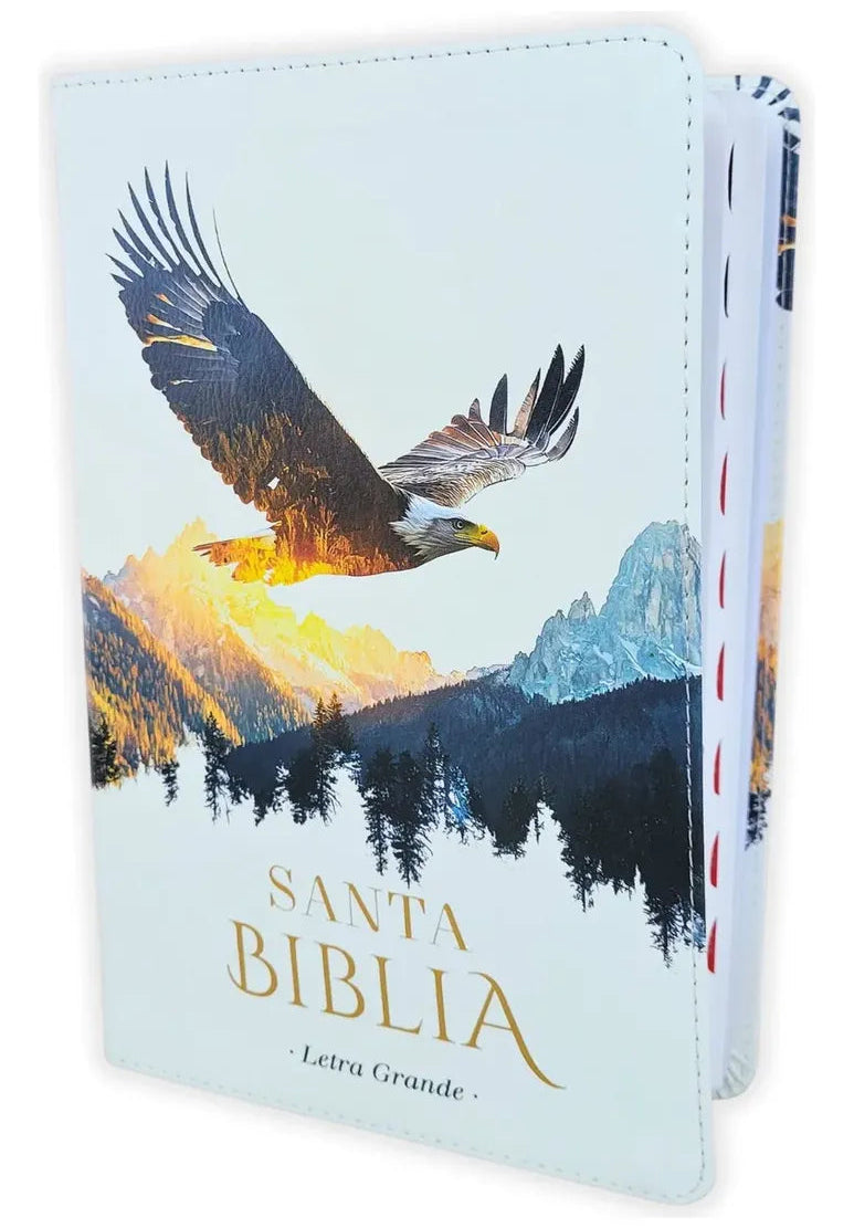 Biblia Letra Grande Águila Sobre Montañas RVR.1960 Imit Piel Blanca Con Índice