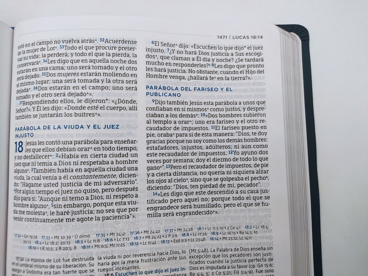 La Biblia NBLA de Estudio MacArthur representa la culminación de más de 35 años de investigación pastoral y erudición del Dr. John MacArthur. Este volumen exhaustivo integra notas de estudio profundas que exploran el contexto histórico, desentrañan el significado textual y aplican la Palabra de manera práctica a la vida contemporánea. Con encuadernación en piel genuina y acabado en azul pizarra, combina elegancia con funcionalidad. El texto NBLA preserva con precisión los idiomas originales mientras mantiene claridad y legibilidad excepcionales, respetando la estructura gramatical de los manuscritos antiguos. Una herramienta indispensable para quien busca profundidad exegética sin comprometer la accesibilidad.