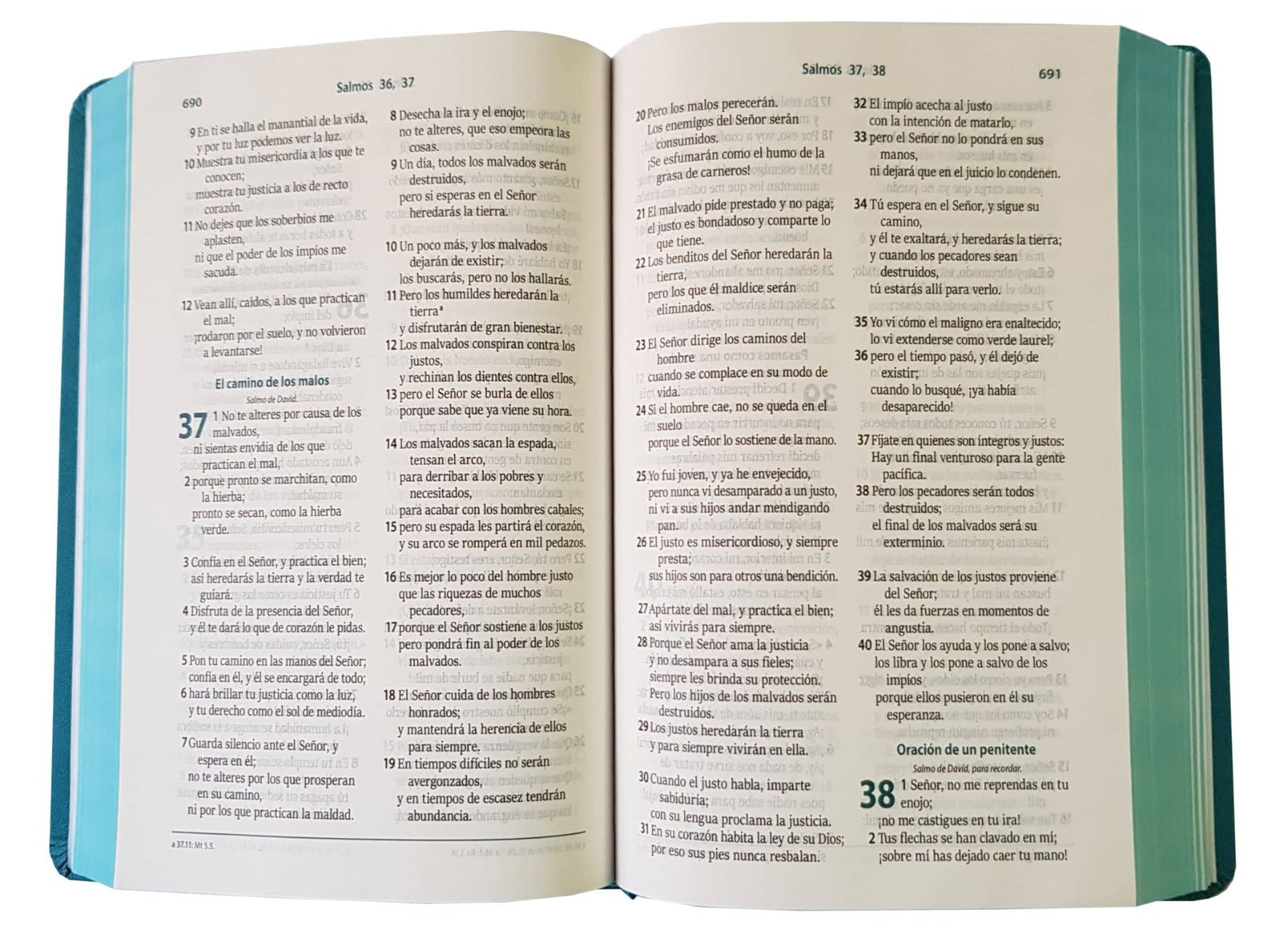 Descubre la elegancia y sofisticación de la Biblia Reina Valera Contemporánea en su edición en color agua marina con letra grande y textura de imitación piel. Experimenta la comodidad de leer esta versión moderna de las sagradas escrituras con claridad y estilo.