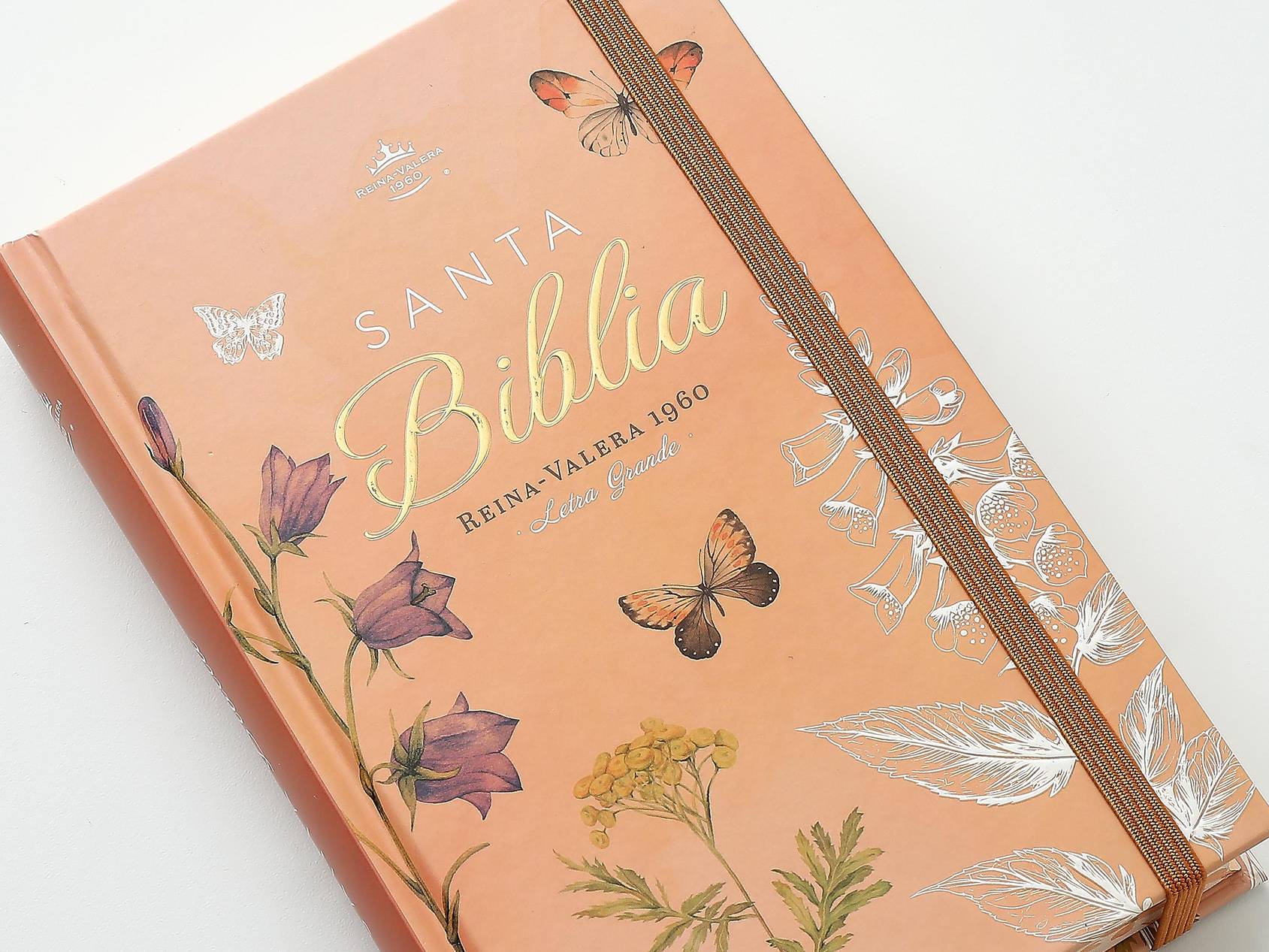 Biblia RVR60 Tamaño mediano Primavera coral con elastico / Tapa dura 12 puntos