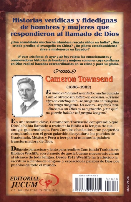 Cameron Townsend descubrió su llamado divino para traducir la Biblia a la lengua de sus amigos guatemaltecos, enfrentando obstáculos que consideraba menores frente al impacto de su misión. Fundador de Traductores Bíblicos Wycliffe en 1942, Townsend impulsó la traducción de las Escrituras a cientos de lenguas, facilitando que comunidades en Guatemala, México, Perú y más, accedieran directamente a la palabra transformadora de Dios. Esta obra refleja su dedicación incansable y visión global para llevar las buenas nuevas a todos los pueblos.