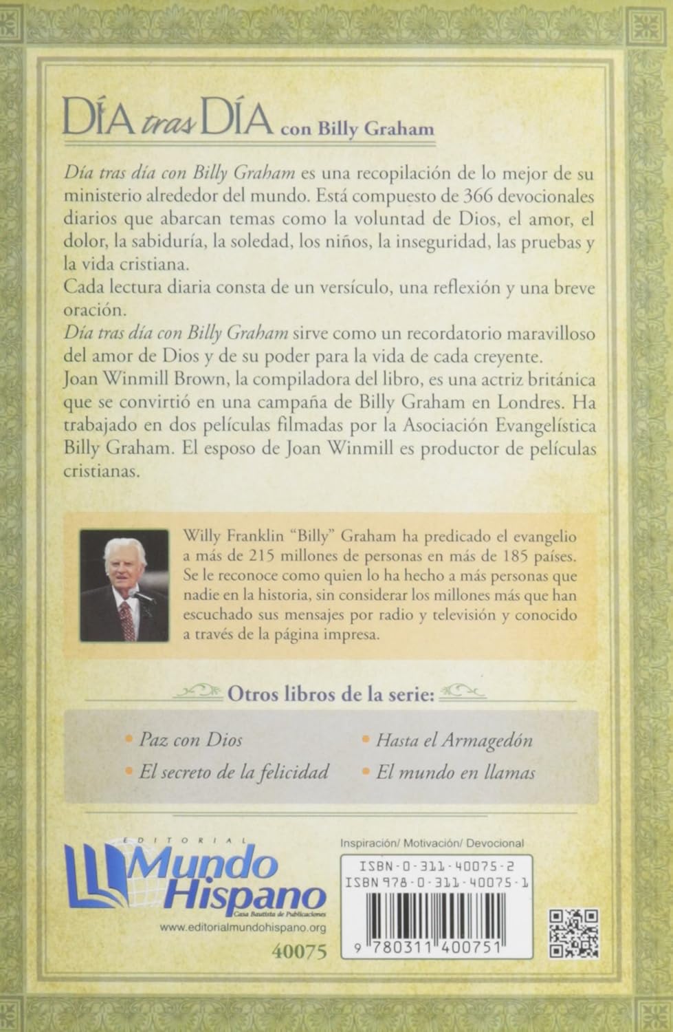 Explore una colección exhaustiva de reflexiones espirituales en Día Tras Día Con Billy Graham, que presenta 366 meditaciones diarias extraídas del legado transformador de este influyente ministerio internacional. Cada devoción aborda aspectos fundamentales de la experiencia humana: el propósito divino, la compasión, el sufrimiento, el discernimiento, el aislamiento, la paternidad, la incertidumbre, las adversidades y el caminar cristiano. Estructurado con precisión, cada entrada incluye un pasaje bíblico acompañado de la perspectiva profunda del doctor Graham y una invitación contemplativa para la oración personal.