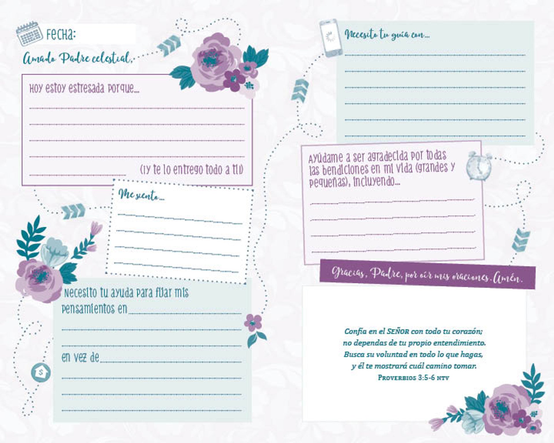 Explora la esencia de la oración con el “Mapa de oración para una vida menos estresada”. Este diario exclusivo combina inspiración y creatividad para ayudarte a gestionar el estrés mientras profundizas en tu relación con Dios. Cada página, elegantemente diseñada en dos tonos, te orienta para plasmar pensamientos, ideas y listas, formando un “mapa” que guía tu diálogo espiritual. Con espacios para fechas, podrás preservar tus oraciones y evidenciar la intervención divina en tu vida cotidiana. Más que un diario, es un convite a crear un hábito constante y significativo de oración, ideal para momentos devocionales personales o en grupos reducidos.