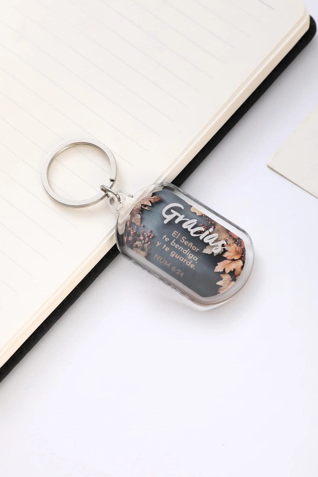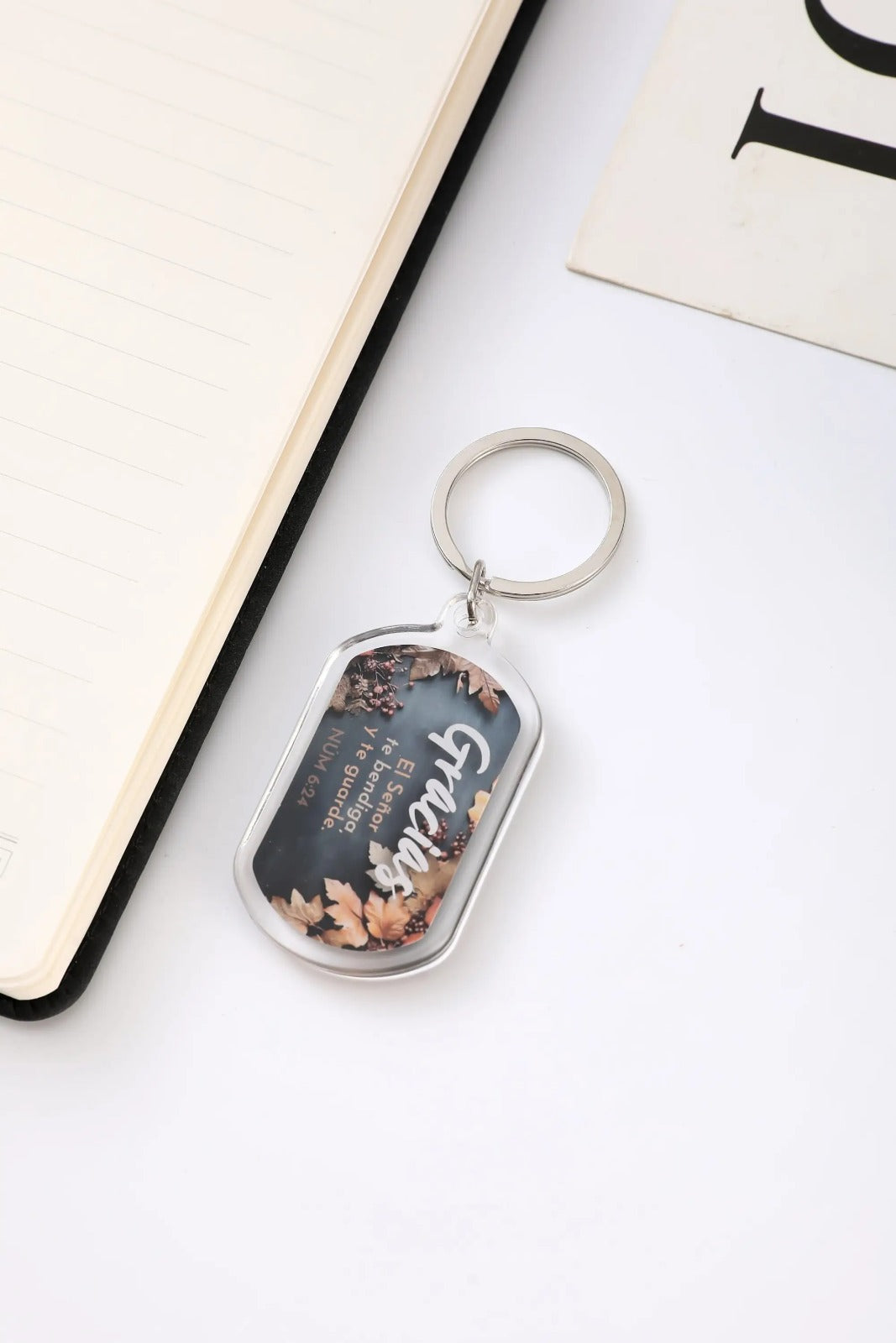 Llavero acrílico que combina funcionalidad con inspiración espiritual. Confeccionado con materiales de primera calidad, este accesorio destaca por su acabado pulido y diseño contemporáneo que se adapta a cualquier estilo personal. El mensaje grabado invita a la reflexión diaria, mientras su estructura resistente asegura un uso prolongado. Presentado en empaques cuidadosamente seleccionados, constituye un presente significativo para aquellos que valoran los detalles. Una propuesta que equilibra elegancia, durabilidad y accesibilidad..