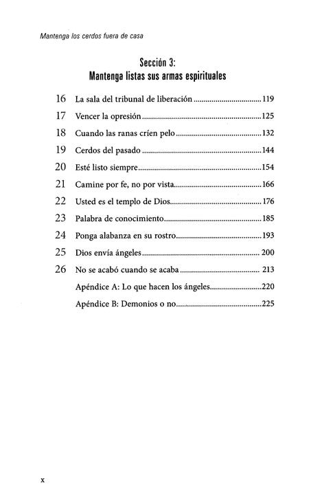 Este libro práctico de Don Dickerman es la continuación ideal para quienes leyeron "Cuando los cerdos se mudan a casa". Ofrece un enfoque experto para mantenerse libre de la opresión demoníaca, combinando principios bíblicos sólidos con relatos impactantes de personas que han vencido en la guerra espiritual. Una guía esencial para fortalecer la protección espiritual y reconocer las artimañas de Satanás, facilitando la libertad y la paz espiritual en la vida diaria.