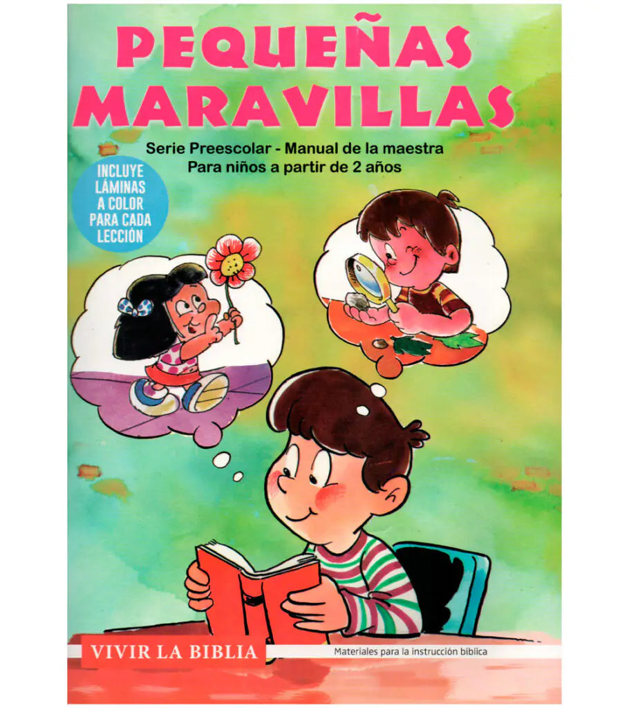 Este manual ofrece lecciones bíblicas diseñadas especialmente para niños desde los dos años. Titulado “Pequeñas Maravillas” en referencia a la etapa temprana de la infancia a la que se dirige, el libro invita a los pequeños a explorar y comprender las maravillas del entorno que los rodea. A través de sus enseñanzas, los niños tendrán la oportunidad de profundizar en el conocimiento de Dios, el creador de todo, mientras descubren el mundo que los envuelve.