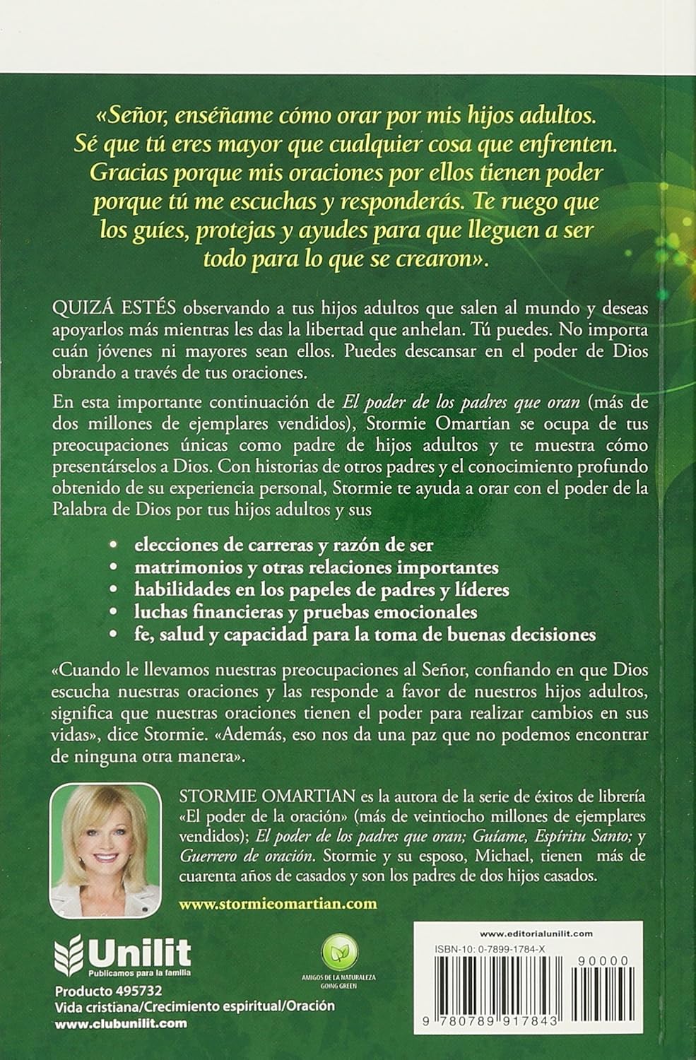 En esta valiosa continuación de El poder de los padres que oran, Stormie se enfoca en las inquietudes que surgen por los hijos adultos y enseña cómo presentarlos ante Dios en oración. A través de relatos de otros padres y experiencias personales, ofrece herramientas para orar con el respaldo de la Palabra de Dios sobre aspectos como la elección profesional, relaciones matrimoniales y familiares, liderazgo y crianza, desafíos emocionales y adicciones, además del compromiso espiritual. Aunque sus hijos se independicen, usted puede confiar en la fortaleza divina que actúa por medio de sus oraciones.