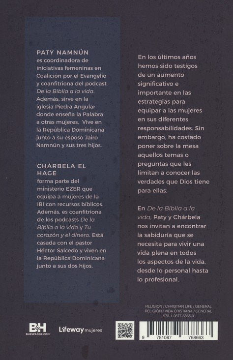 En “De la Biblia a la vida” el lector encontrará respuestas sobre su vida profesional, las tareas domésticas, el ministerio de la iglesia local, amar a su prójimo, etc. que lo guiarán hacia vidas florecientes y fieles ante el rostro de Dios.