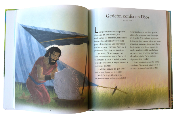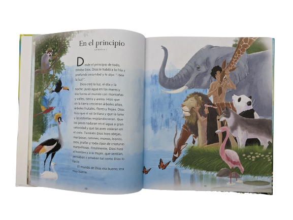 De Génesis a Apocalipsis encontramos historias maravillosamente ilustradas que nos recuerdan sobre la creación de Dios en Génesis, el cuidado de Dios hacia el pueblo hebreo en Éxodo, la fuerza que le otorgó a David peleando contra el gigante Goliat y el resguardo que le dio Jonás por medio de una ballena. En el Nuevo Testamento encontramos el nacimiento de Jesús, sus milagros, así como también su muerte y resurrección y su promesa final de regresar.