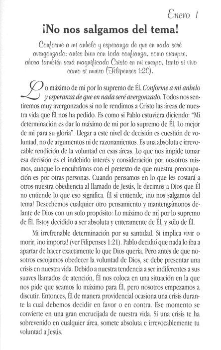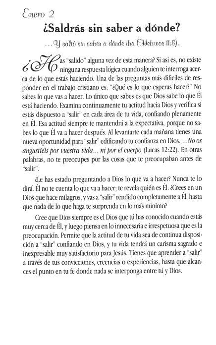 Este es un devocional que durante años ha sido recomendado por su comprensión doctrinal. Al final del libro hay un índice de citas que le ayudarán durante todo el año a estudiar y aprender el inmenso tesoro que tenemos al mantener una comunión íntima con nuestro Padre Eterno.