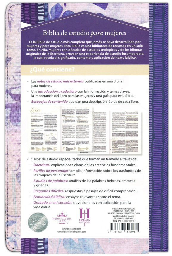 Biblia Estudio para Mujeres / Azul Floreado Tela Impresa RV1960