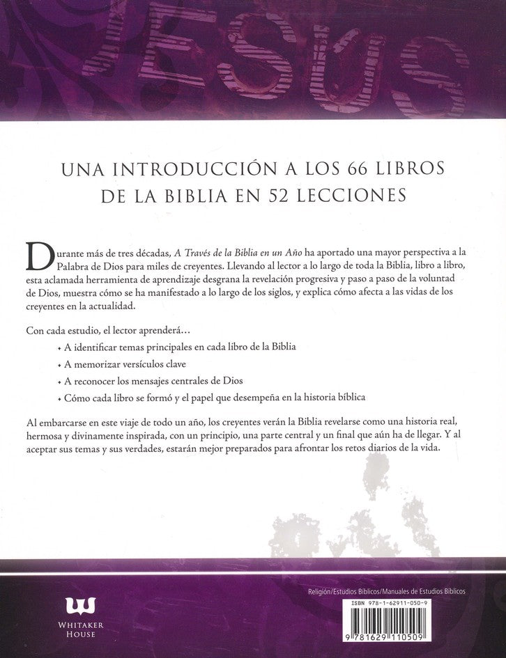 Una introducción a los 66 libros de la Biblia en 52 lecciones. Durante más de tres décadas, A través de la Biblia en un año ha aportado una mayor perspectiva a la Palabra de Dios para miles de creyentes. Llevando al lector a lo largo de toda la Biblia, libro a libro, esta aclamada herramienta de aprendizaje desgrana la revelación progresiva y paso a paso de la voluntad de Dios, muestra cómo se ha manifestado a lo largo de los siglos, y explica cómo afecta a las vidas de los creyentes en la actualidad.