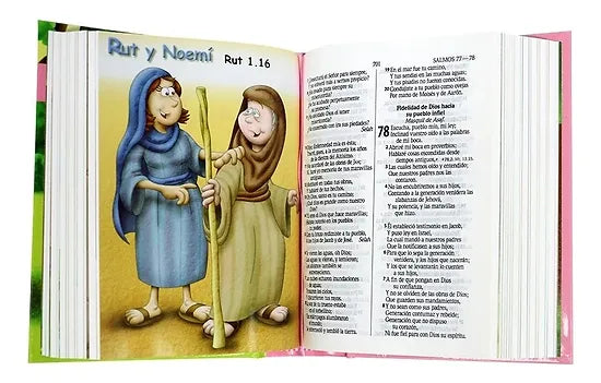 – Concordancia de 122 páginas, para que el niño aprenda a buscar temas de la Biblia.