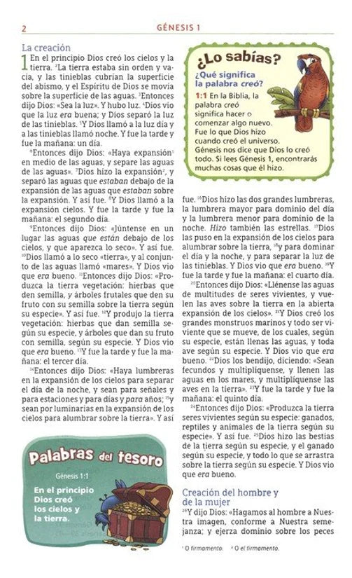 Las ilustraciones coloridas, entre muchas actividades más, hacen de esta Biblia un libro único para los que inician en la hermosa aventura de fe en Jesús.
