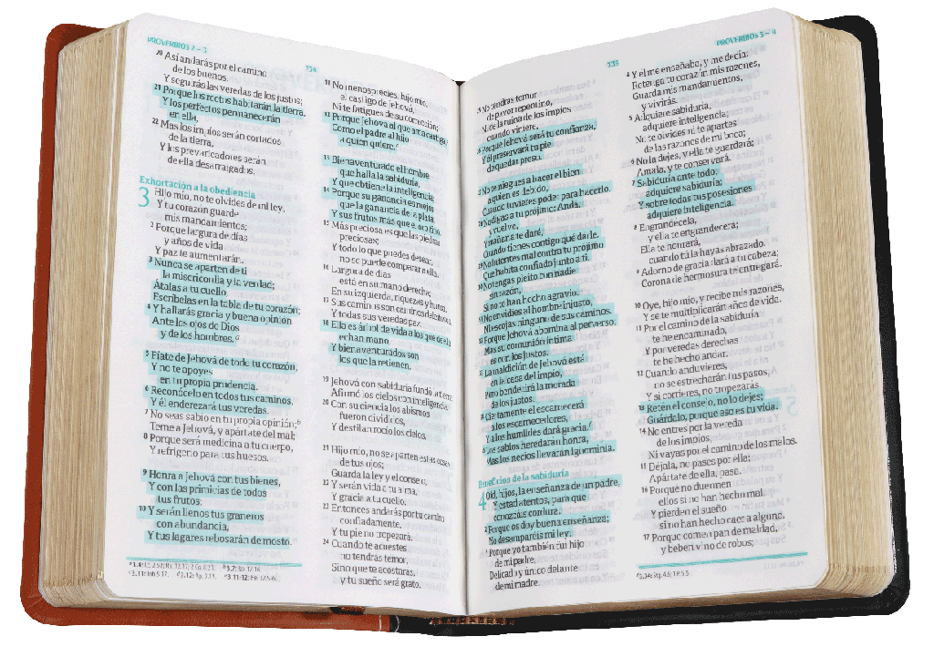 Fuente de Bendiciones es un índice de pasajes bíblicos que tratan de cuatro aspectos de la vida cristiana: la relación con Dios, la relación con las personas, la relación con la Palabra de Dios y las bendiciones de la vida cristiana. Los versículos incluidos en la lista están destacados a lo largo del texto bíblico. Contiene concordancia con palabras clave y los pasajes en que aparecen, lo cual facilita el estudio de las Escrituras