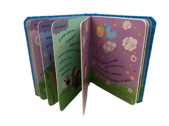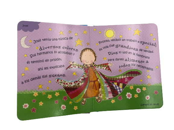 Biblia historias para niños y Biblia historias para niñas son dos nuevos, fabulosos e inspiradores libros que serán las delicias de los niños pequeños. Con estos libros, a los niños les encantará leer, escuchar y aprender acerca de la Biblia, además que les cautivarán las rimas y descripciones de algunas de las más famosas historias. Cada página de estos libros explora una historia diferente de la Biblia con un texto simple, con rimas y bellas ilustraciones que atraerá e inspirará a pequeñas mentes.