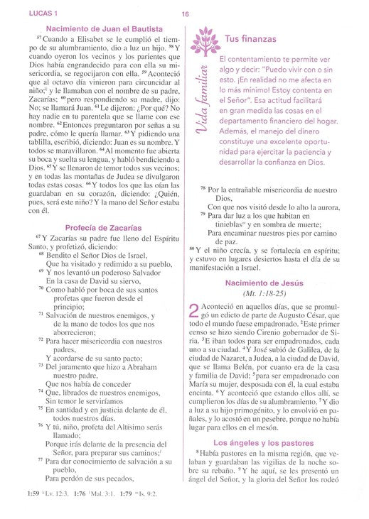 365 lecturas devocionales con una oración al final y un plan para leer la Biblia en un año.