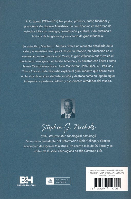 En este libro, Stephen J. Nichols narra la vida y ministerio de RC Sproul: su niñez, formación educativa, matrimonio y relación con su esposa Vesta, su influencia en el evangelismo americano y sus muchas amistades con diversas figuras clave como James Montgomery Boice, John MacArthur, John Piper, JI Packer y Chuck Colson. Esta biografía detalla el impacto profundo que tuvo Sproul en las Vidas de muchos y destaca las diversas formas en que su legado sigue influenciando a incontables pastores y estudiantes alrededor del mundo.