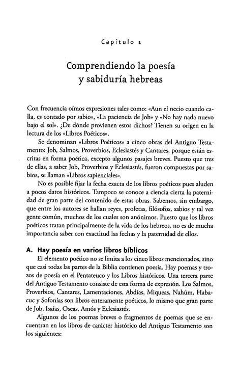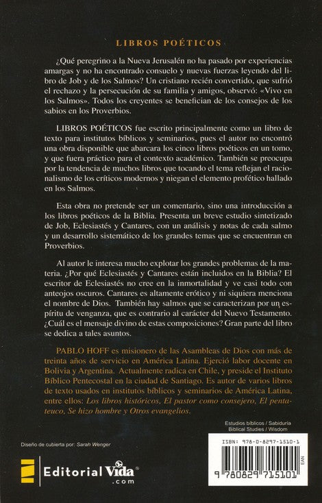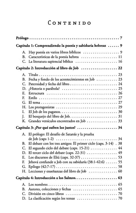 ¿Qué peregrino rumbo a la Nueva Jerusalén no ha tenido experiencias amargas y luego encontró esperanza y fortaleza al leer el libro de Job y los Salmos? Este libro es una introducción a los libros poéticos de la Biblia. Presenta un breve estudio sinóptico de Job, Eclesiásticos y Cantar de los Cantares, con análisis y notas para cada Salmo. El autor está interesado en explorar las grandes preguntas. ¿Por qué se incluyen Eclesiásticos y Cantar de los Cantares en la Biblia? El autor de Eclesiásticos no cree en la inmortalidad. El Cantar de los Cantares es muy erótico y no menciona el nombre de Dios. Hay Salmos que se caracterizan por la venganza, lo cual es contrario a la naturaleza del Nuevo Testamento. ¿Cuál es el mensaje divino de estos escritos?