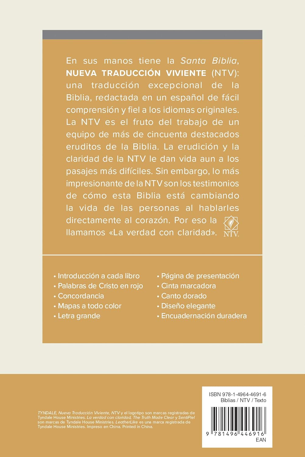 La NTV es una magnífica traducción de la Biblia en español, redactada con facilidad de comprensión y fidelidad a los idiomas originales. Fue creada por un equipo de más de cincuenta expertos en la Biblia, cuya erudición y claridad le dan vida incluso a los pasajes más difíciles. Pero lo más impresionante es cómo la NTV ha cambiado la vida de las personas, hablando directamente a su corazón. Es por eso que la llamamos "la verdad con claridad".