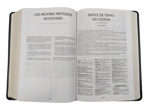 La Biblia de Referencia Thompson, versión Reina Valera 1960 , es sin lugar a dudas una de las Biblias de estudio y referencia más completas que se puede encontrar. Es prácticamente una biblioteca de referencia bíblica gracias a más de 7.000 nombres, lugares y temas y más de 100.000 referencias. Las ayudas marginales siguen un sistema numérico que las vincula a ocho secciones al final de la Biblia, donde la profusión de detalles es superior a cualquier otra Biblia publicada. Está diseñado para ayudar al lector a identificar miles de temas significativos, conceptos, ideas y personajes bíblicos, e investigar las referencias de estos temas a través de toda la Biblia. Es un sistema completo, fácil de entender y de usar. Esta es la Biblia ideal para el pastor, el maestro de Escuela Dominical, el laico y el estudiante.