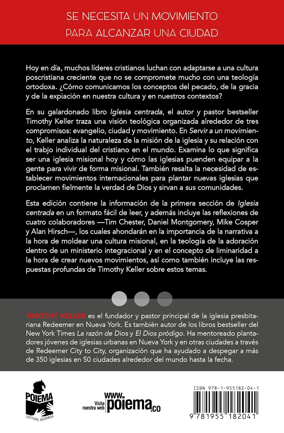 En Servir a un movimiento, Keller analiza la naturaleza de la misión de la iglesia y su relación con el trabajo individual de cristianos en el mundo. Examina lo que significa ser una iglesia misional hoy y cómo las iglesias pueden equipar a la gente para vivir de forma misional. También resalta la necesidad de fomentar movimientos internacionales para plantar nuevas iglesias que proclamen fielmente la verdad de Dios y sirvan a sus comunidades.