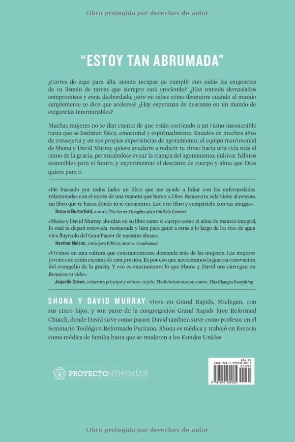 Muchas mujeres desconocen que están viviendo a un ritmo incontrolable hasta que enfrentan daños físicos, emocionales y espirituales. Con base en años de consejería y sus propias vivencias de agotamiento, Shona y David Murray, un equipo matrimonial, desean ayudarte a desacelerar para adoptar un estilo de vida marcado por la gracia. Así, podrás evitar la trampa del agotamiento, desarrollar hábitos duraderos y descubrir el descanso integral que Dios anhela para ti.