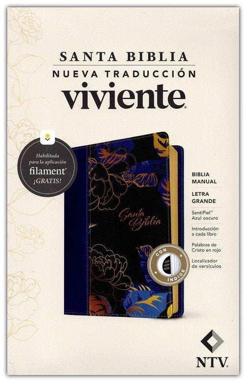 Santa Biblia NTV letra grande con indice imitación piel con Filament / azul oscuro